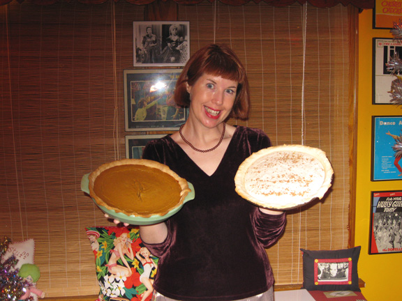 Not coming from a "food family," I was amazed when I started celebrating holidays with Paul's family and realized they often had more desserts than guests. I've since made it a holiday rule here at the Lounge that we have to have at least as many desserts as folks at the table. I made pumpkin and eggnog pies and Paul made green tea ice cream, so we covered those bases. We picked up an eleven pound turkey, so we should be eating that for a while! Paul made the stuffing and cranberry sauce and I took care of the sweet potato and green bean casseroles. It was yummy, which is a good thing, because there's lots left!