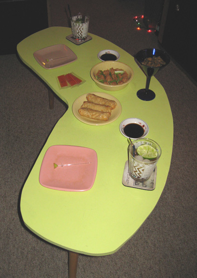 We have a freezer full of Kahiki Foods eggrolls, so I decided to bust some out for happy hour, which caused me to suddenly want to bump up the Asian quotient in everything we were having, including peanut butter on celery. I added a lot of ginger, some soy sauce, honey, cayenne pepper and a little salt and it really did add a fun note to the old classic. Some oysters and mai tais completed the spread and I felt we had an Asian happy hour that Larry and Louise Tate would have been proud to serve!