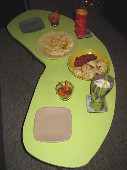 I typically don't think about our Friday happy hour until, well, Friday, and this week was no exception. We weren't going anywhere on Friday and, if we had, the stores probably would have been closed, anyway. We were reminded, once again, of how important a well-stocked pantry is, particularly in the dead of winter. Eggs, mayo and spices=deviled eggs. Biscuit mix, milk and whatever you have on hand=little dipping puffs (I added shredded cheese, basil, oregano, pepper flakes and salt, since we were dipping in marinara sauce). And the carrots are just soaking in some Asian dressing I'd made days before. It's funny to me that people make millions of dollars every year, making this stuff seem really difficult and involved. You probably have the ingredients in your pantry (and fridge) right now to whip up some tasty appetizers with very little effort.