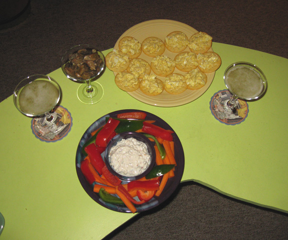 I boiled eggs for deviled eggs for happy hour, but decided I wanted to do something different, so I made this curried egg salad to serve on top of crackers: