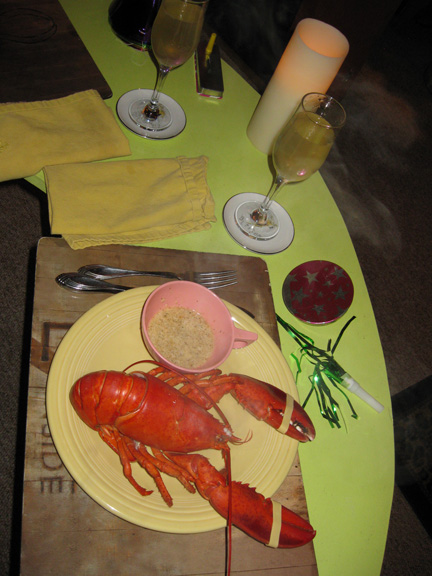 Lobster has become our yearly tradition and by now it would take a lot to get us to change our plans. Paul cooked the lobsters and asparagus and I was on appetizer duty. We shared the bartending. It's always amazing, but I have to say I thought this year's lobster was especially transcendent. I can't wait until next year, so we can do it again!