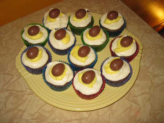 I found this recipe online and was immediately smitten! I give you Cadbury Creme Egg Cupcakes!