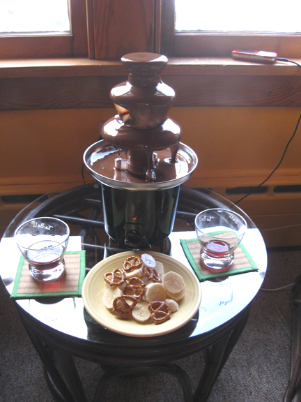 The fountain was a gift from my mother and I'm pleased to say it works like a champ! I used milk chocolate for our initial run, but you can use any kind of chocolate you want, you can add liquor, and you can even use other types of sauces, if you prefer, just as long as they don't have chunks of anything in them. I can't wait to use it at a party! Thanks, Mom!